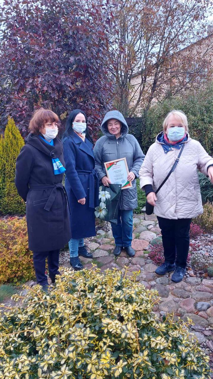 В завершении Недели матери в Молодечненском районе поздравили победительниц смотра- конкурса «Ветеранское подворье-2021», организованном районной организацией ветеранов при участии районных ОО БСЖ, об’единения организаций профсоюзов, ОО БРСМ, Совета депутатов, УП «Коммунальник». Члены жюри благодарили участниц конкурса за их активность, неравнодушие и творческий подход. Специальным призом Молодечненской районной организации ОО БСЖ отмечена старейшая участница конкурса Гончарик Татьяна Алексеевна, 1932 г.р., которая много лет занимается благоустройством дворовой территории возле д.1 по ул.Мовчанского в г.Молодечно, где она проживает.